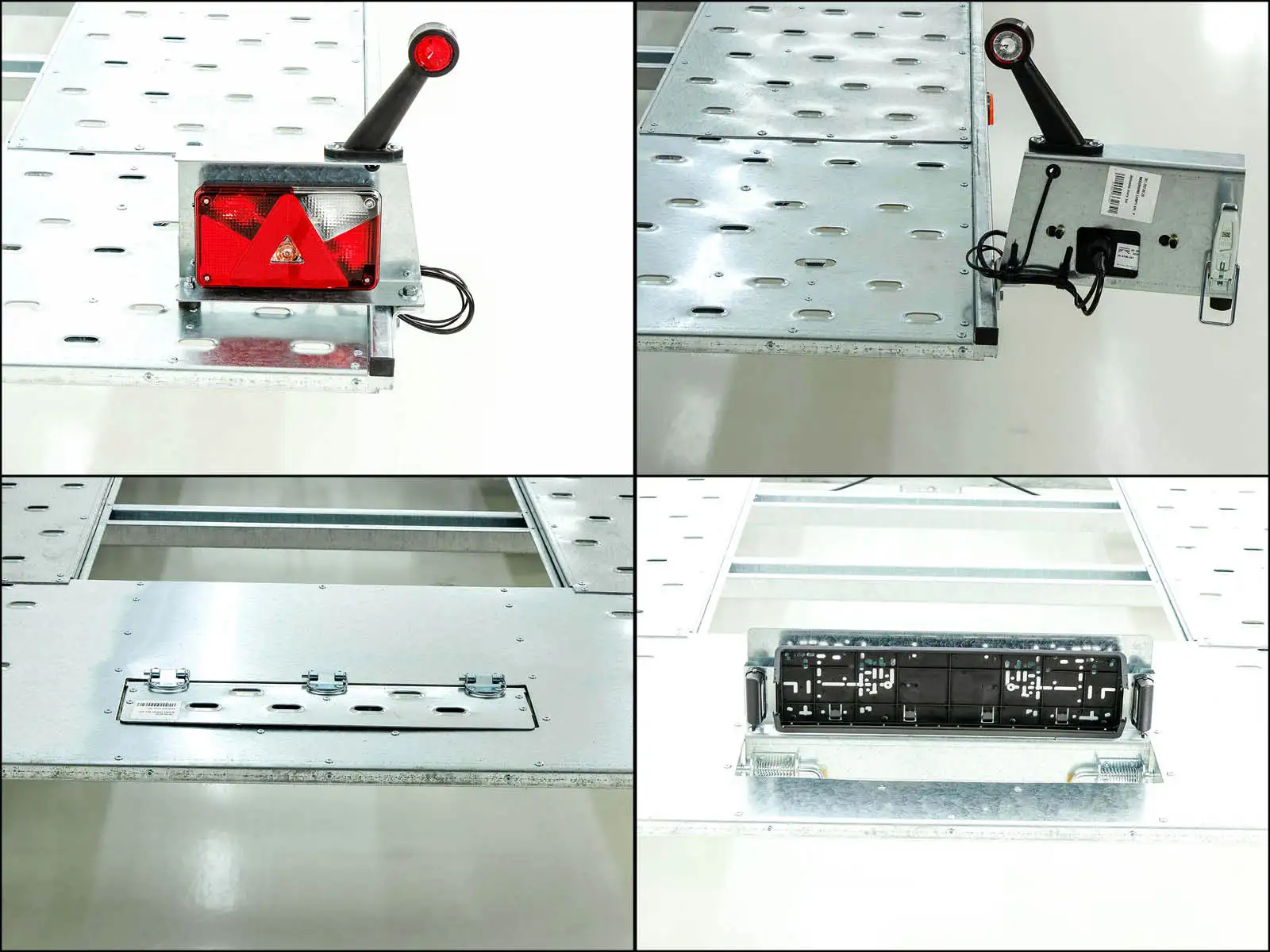 - Stahlstandschienen, gelocht / mittig Riffelblech auf Siebdruckplatte