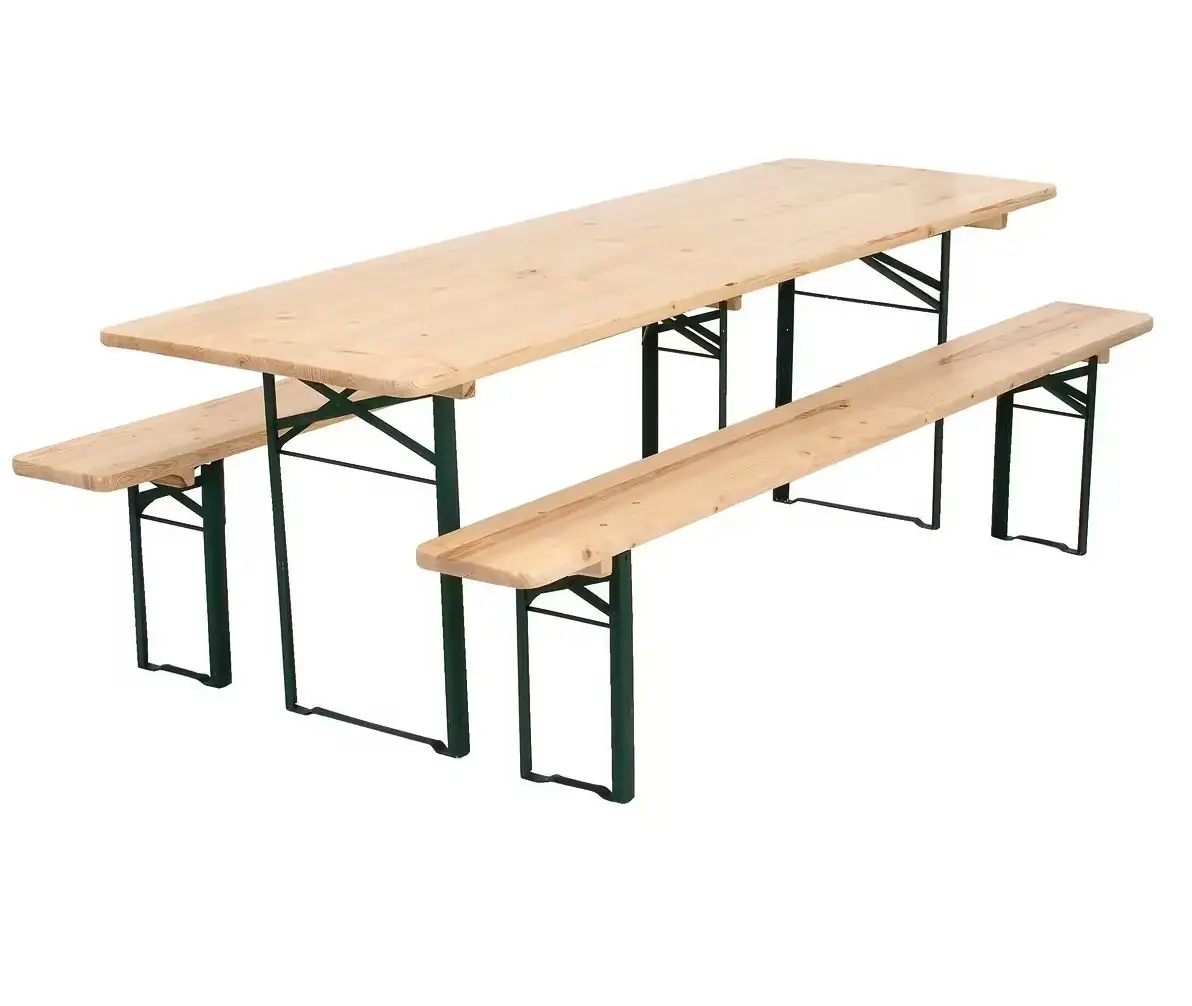 Robuste Festzeltgarnitur 3-teilig mieten, 1x Biertisch (224 x 70 x 78 cm) + 2x Bierbänke (jeweils 220 x 25 x 48 cm)